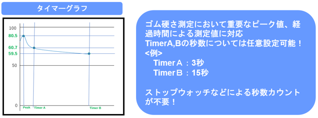 (1)Bluetoothデュロメータ(ゴム硬度計)の測定データを取り込める機能を追加。ピーク値の他、時間経過による数値の変化や一定時間後の測定値などが記録、管理可能。