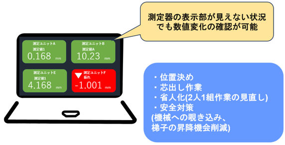 (3)リアルタイムモニタリング機能を追加。測定器の表示部が見えない状況でも数値変化の確認が可能。